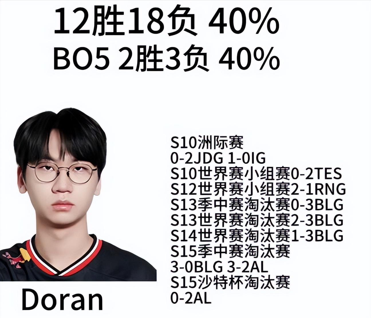 Apart from Faker, the other T1 members also have high win rates against LPL teams. However, T1’s top laner Doran’s record has sparked much discussion since he holds a low 40% win rate against LPL. Many fans believe Doran could be T1’s biggest weakness, and some are eagerly watching to see whether Faker’s or Doran’s record will be broken first. (Faker has never lost a BO5 against LPL in the World Championship, while Doran has never won a BO5 against LPL.)
