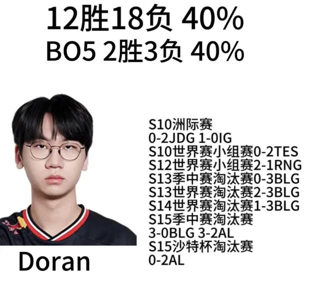 Introduction: The S15 season has officially started, and it’s believed that the majority of players have been closely watching the recent confrontations. Most regions are in a short break now, and the main focus is on the World Championship battles. The LPL and LCK have competed for many years, but in recent matchups, the LPL has performed poorly, getting easily controlled by the LCK annually. This season’s changes made the opening match of the Worlds a huge deal. Some fans compiled stats showing LCK’s top pro players’ win rates against LPL, revealing that mid-laner Faker holds a 70% win rate and has never lost a BO5 on the World Championship stage against LPL teams. However, data analysis shows that Doran has been a weak link, with only a 40% win rate.