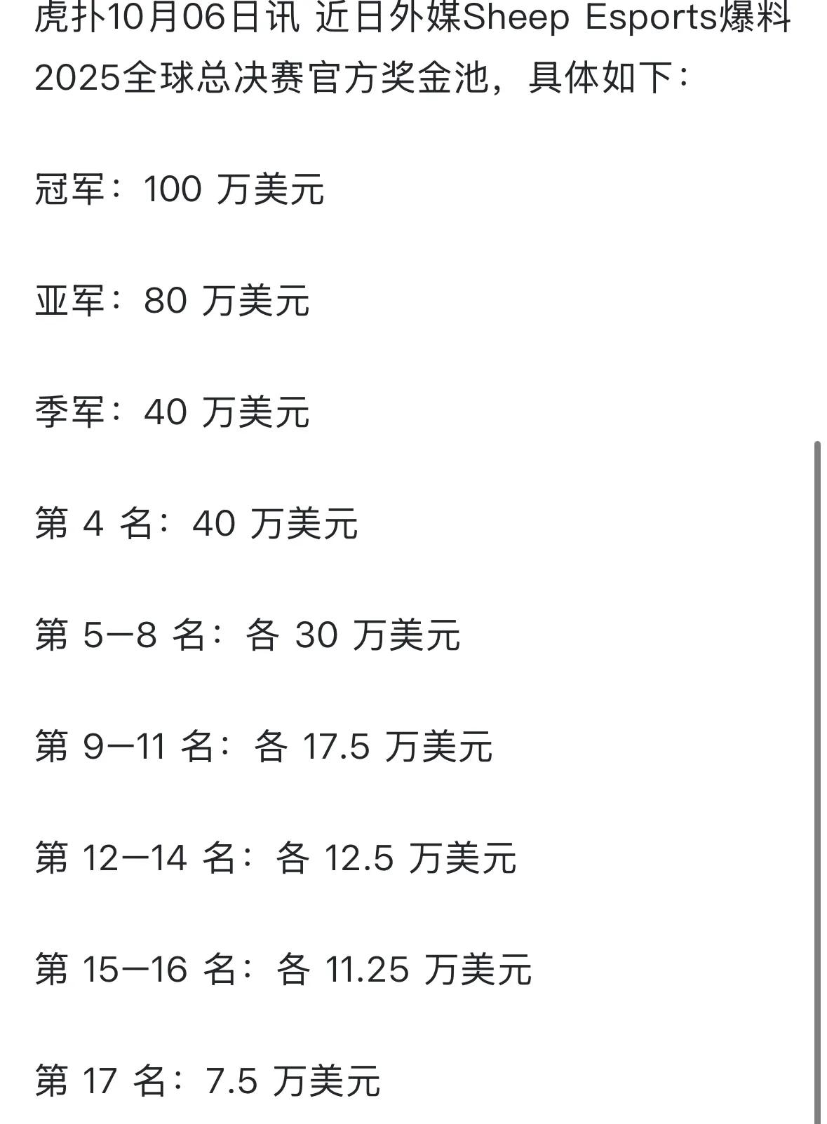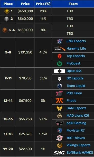 Introduction: The S15 season is underway, and the majority of players have been paying attention to the recent clashes. All major regions have taken a brief hiatus; some teams are involved in entertainment matches, while others are gearing up for the final World Championship. Over the past few years, League of Legends' popularity has been a major focus for many players. Many believe the game is in decline, with a significant number even leaving. However, judging by this year's World Championship prize pool, investment in League may actually be increasing. Recently, the organizers officially announced the prize distribution for the S15 Global Finals. The first-place prize is an astonishing $1 million, doubling that of S14. The 17th place prize is only $75,000, which might barely cover travel and accommodation for non-local teams.