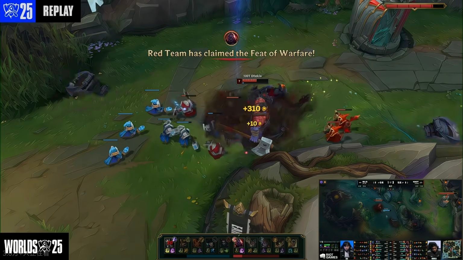 Before these two BO1 matches, many feared the LPL would lose, but both T1 and AL delivered. Instead, the highly anticipated all-Chinese BLG suffered a shocking upset, falling to the LCS’s third seed 100 Thieves. Everyone saw the game: Bin was heroically defending towers but got solo killed, and even the bench player, Sadbean, couldn’t help but cover his eyes watching. Despite having mid-game advantage, BLG was crushed in teamfights, losing 1-for-5 exchanges.