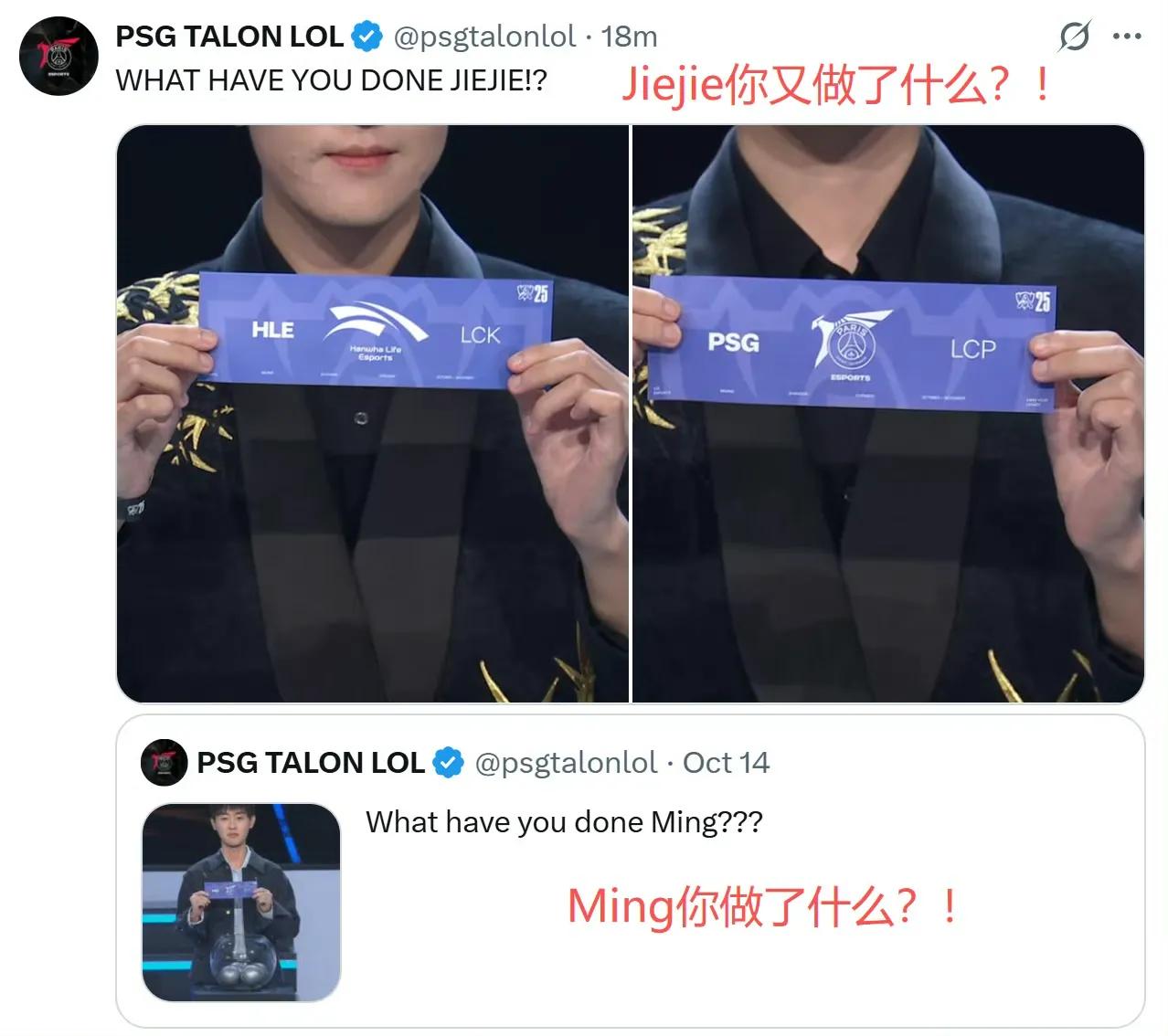 Next up is TES in the winners' group, facing a relatively weaker opponent, 100T, who just defeated BLG. TES is expected to come down hard and show what a true LPL team looks like, sending a strong message after a win. PSG’s situation looks rough—they barely made it to Worlds, faced GEN, the LCK champions, in the first round, and now must face the strongest HLE in the losers' bracket. They are likely to end up 0-2. It’s a bit sad for Karsa, who even joked after the draw that he’s made two new enemies: Xiaoming and Jiejie.