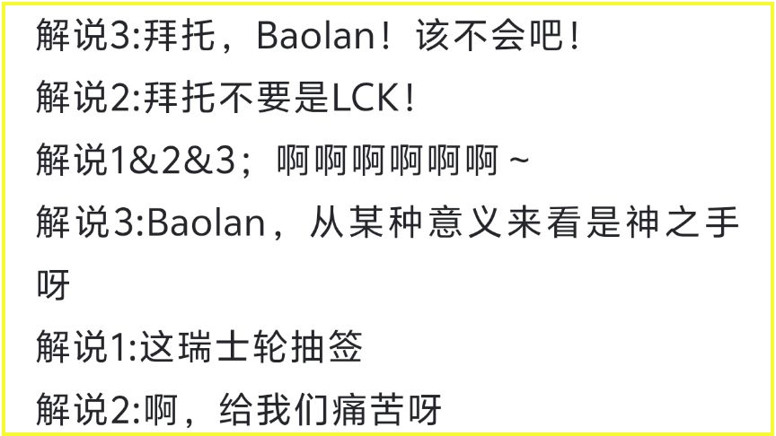 Unexpectedly, in the 1-1 group draw, Baolan continued to make an impact. LCK’s GEN and T1 were paired for an intra-region battle, while BLG faced a slightly weaker G2. HLE drew 100 Thieves, which was a favorable outcome, and FLY was matched against Vietnam’s TSW. When the draw results came out, LCK’s official commentators at the live broadcast visibly broke down, exclaiming: “Ahhh, Baolan is giving us so much pain.”