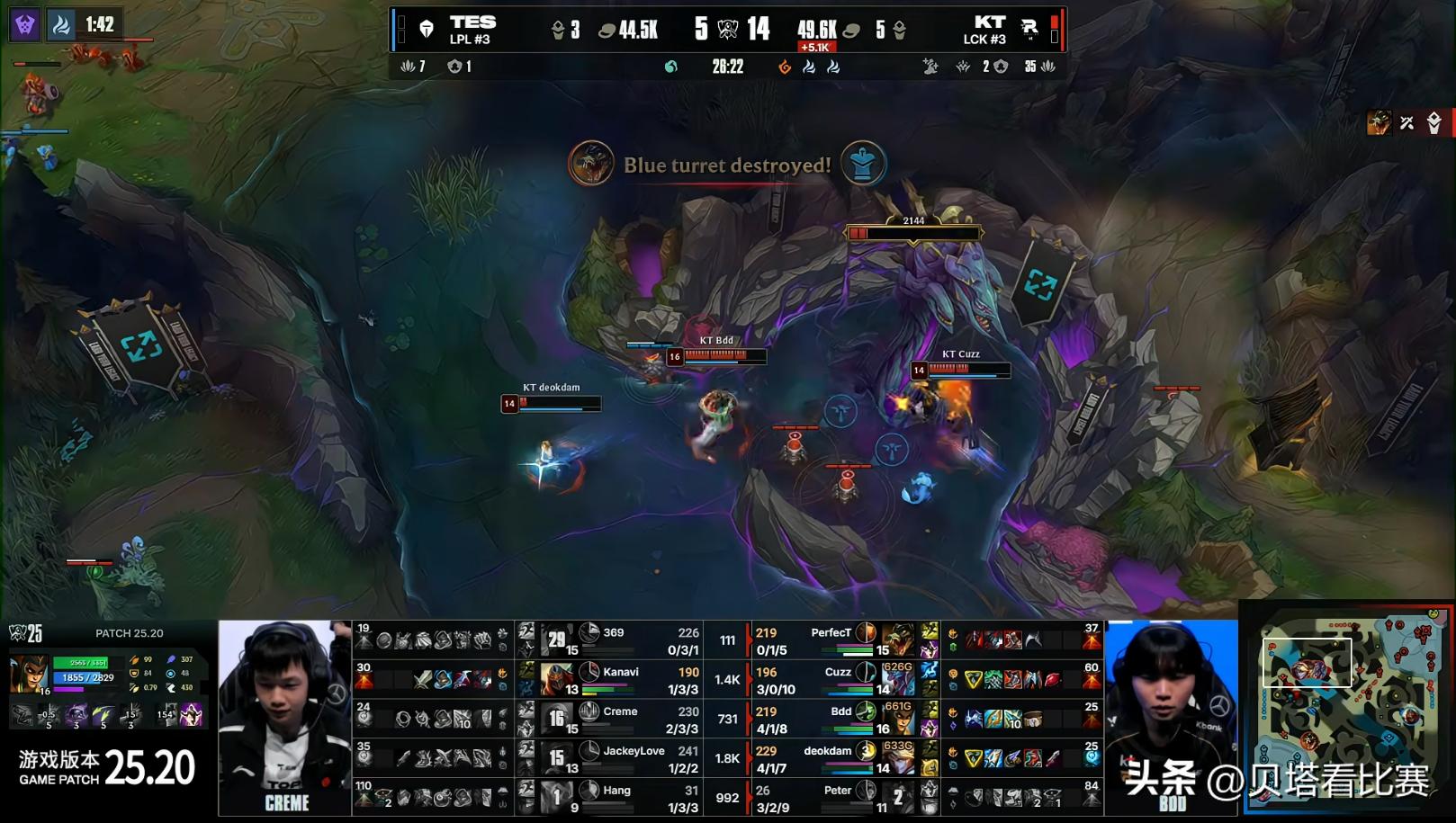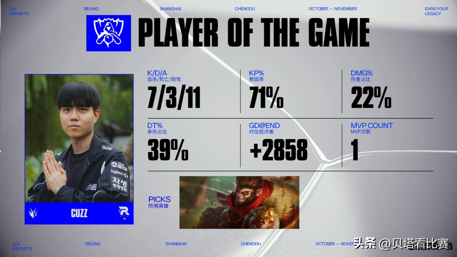 At the 20-minute mid-game fight over Elder Dragon, 369’s Aatrox teleported in aggressively, KT immediately engaged, with creme’s Annie R baiting Wukong’s ultimate, and Perfect’s Rumble delivering a perfect ultimate. KT won the fight 1-for-2 and secured Elder Dragon. At 23 minutes, fighting over the dragon, Kanavi’s Jarvan was instantly killed, KT took the dragon and traded 2-for-2. 369’s Aatrox reengaged and killed Cuzz’s Wukong, but KT’s two carries cleaned up and wiped TES. At 27 minutes, Hang’s Neeko initiated mid but was instantly killed, KT then took Baron. 369’s Aatrox entered but Cuzz’s Wukong dove the backline; KT won a 2-for-5 teamfight, took the dragon, and extended their lead. At 31 minutes, TES’s two carries were killed quickly, KT secured their first Baron. Finally, at 32 minutes, TES tried to engage on Cuzz’s Wukong but lacked damage, KT countered, wiped TES, and claimed the first game victory. The MVP of the first game was awarded to Cuzz’s Wukong.