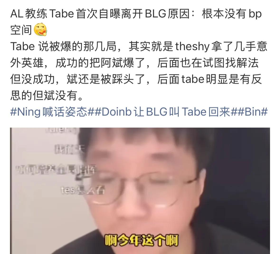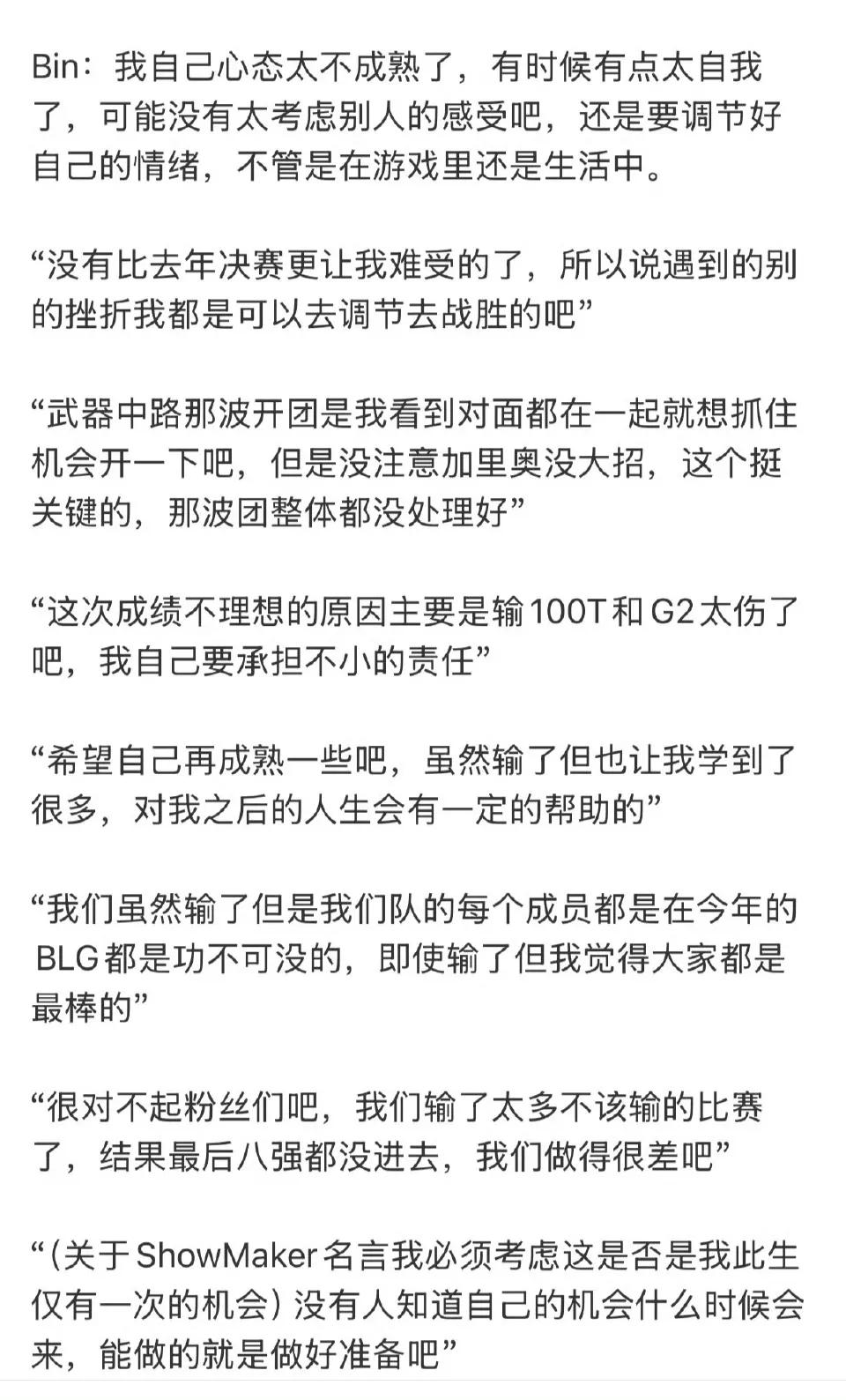 He stated that sometimes he was too self-centered and didn’t consider others’ feelings enough. He hopes to become more mature. Although they lost, he learned a lot, which will help him in life going forward. The disappointing result was mainly due to heavy losses against 100T and G2, and he accepts significant responsibility. Afterwards, netizens found Bin’s radar data from the Swiss round, revealing he consumed the most resources but dealt the least damage, becoming a typical leech top laner. Especially his damage conversion rate ranked 17th from the bottom among top laners. Many called for BLG to bring Tabe back, but after Tabe disclosed the lack of BP space as his reason for leaving, chances of his return seem slim.