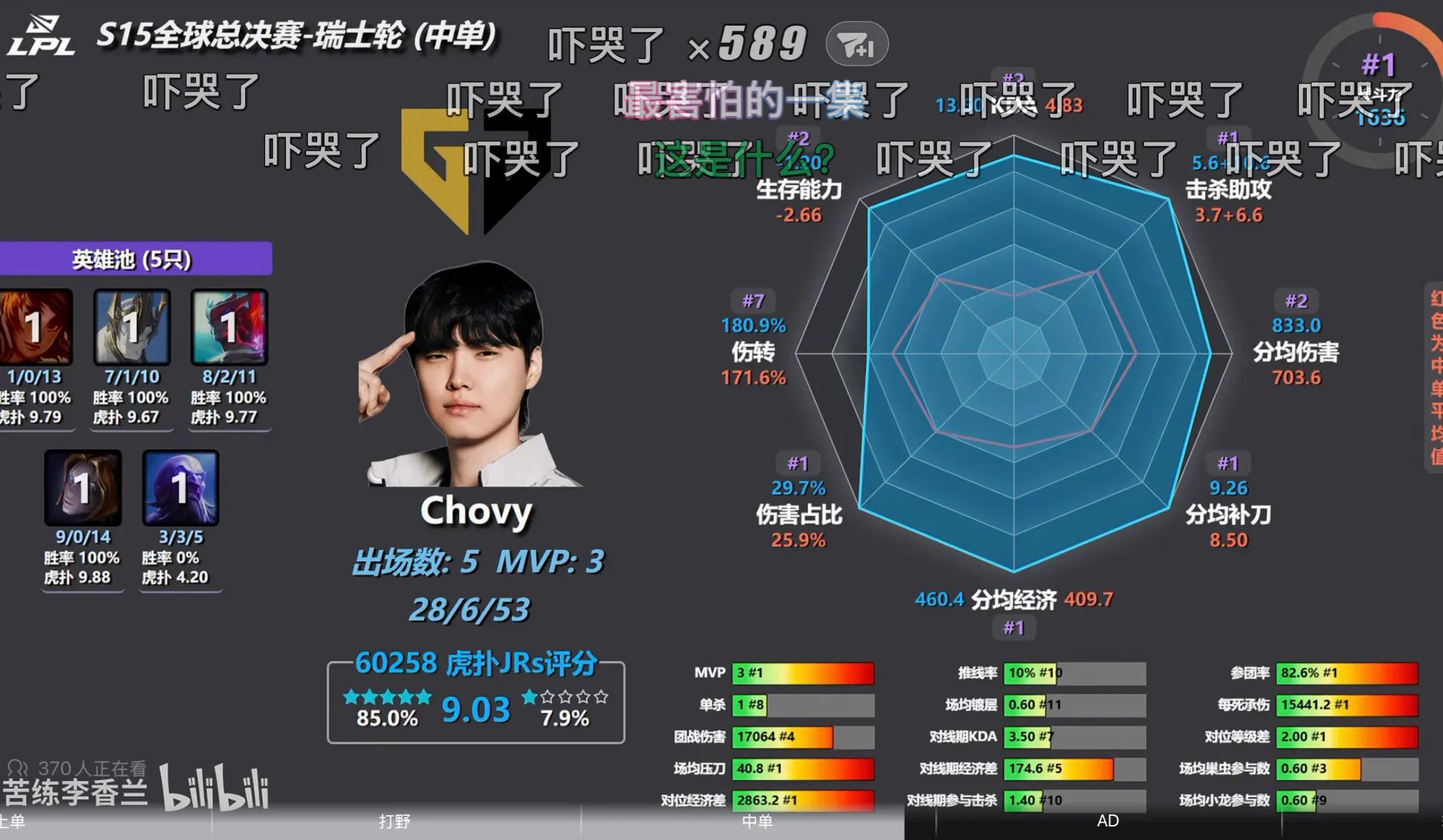 The most impressive data chart belongs to Gen.G’s mid laner Chovy, who maxed out nearly every metric: CS per minute, gold per minute, damage share, kills and assists all ranked first. Damage per minute, KDA, and survivability were second, with only damage conversion rate slightly lower but still above average at 180.9 versus 171.6. Top laner Zeus was also outstanding, maxing out damage. Losing him was definitely T1’s biggest mistake. So AL team shouldn’t worry too much; after all, there are explanations for Doran’s BO5 results, and our chances of winning remain viable.
