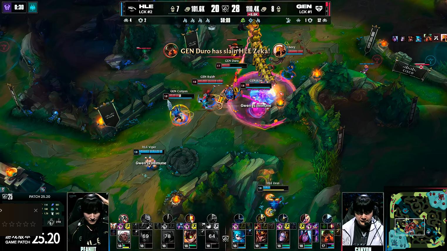 In the 2025 League of Legends World Championship quarterfinals, GEN overcame HLE 3-1 to reach the semifinals!