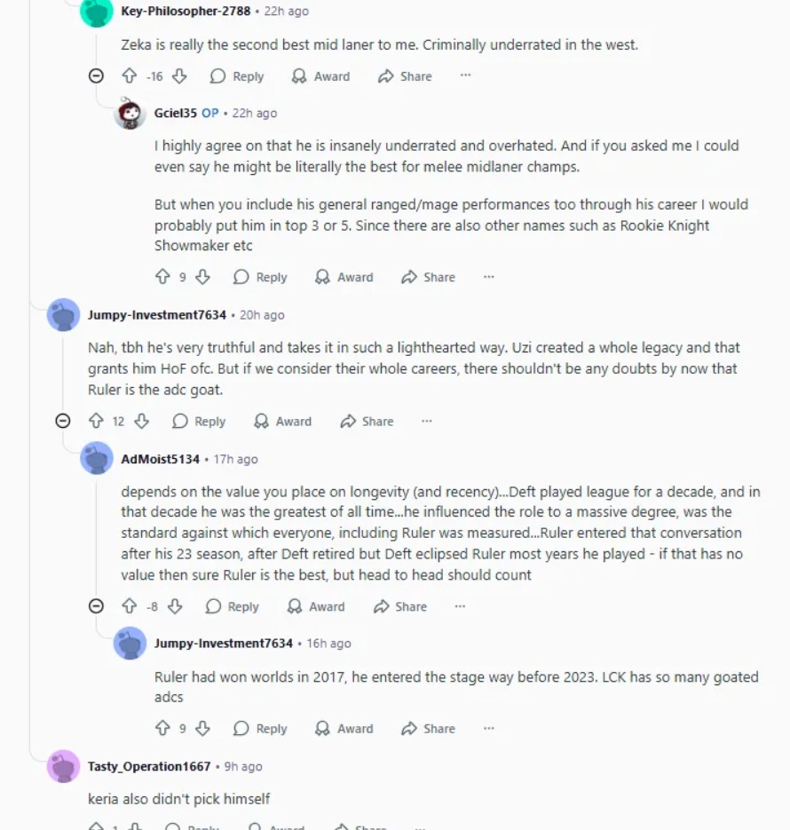 After the video spread abroad, many foreign fans shared differing opinions. Since many players like Zeka and Keria were invited and mostly did not pick themselves at the end, it seems that apart from Faker, no one dares to claim they are the GOAT in such interviews.