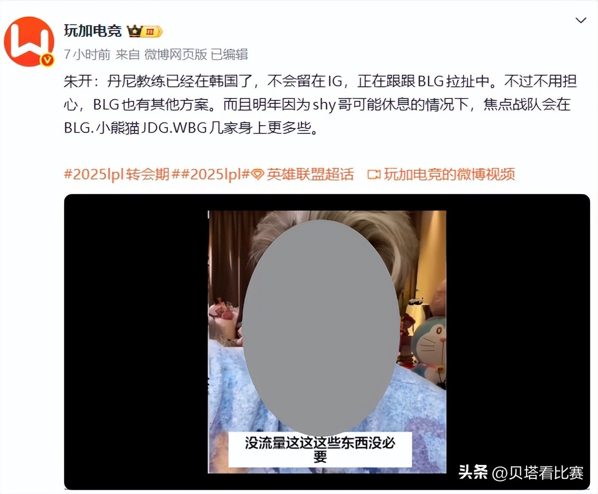 Next year’s BLG lineup is set: top laner bin, jungler xun, mid laner Knight, and bot lane duo Viper with ON. The dual carry setup looks solid with all top-tier players. The top-jungle-support synergy might be less stable, but compared to this year, BLG’s overall strength has improved significantly. The biggest challenge now is the coach. According to Zhu Kai’s leak, IG’s coach Danny is currently in talks with BLG. Although Danny didn’t lead IG to great international results this year, IG’s progress was obvious, and considering his previous success with WBG, his joining BLG would be a major boost.