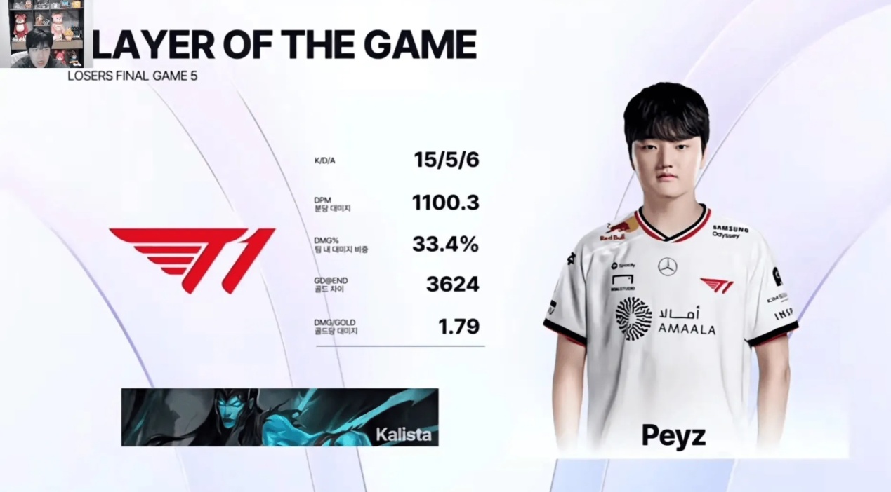 Afterwards, DK’s attempt to instantly kill Kalista failed. T1 counterattacked, trading one for four and securing the Baron. In the final defense at the base, DK was forced into a desperate fight and ultimately lost the match.