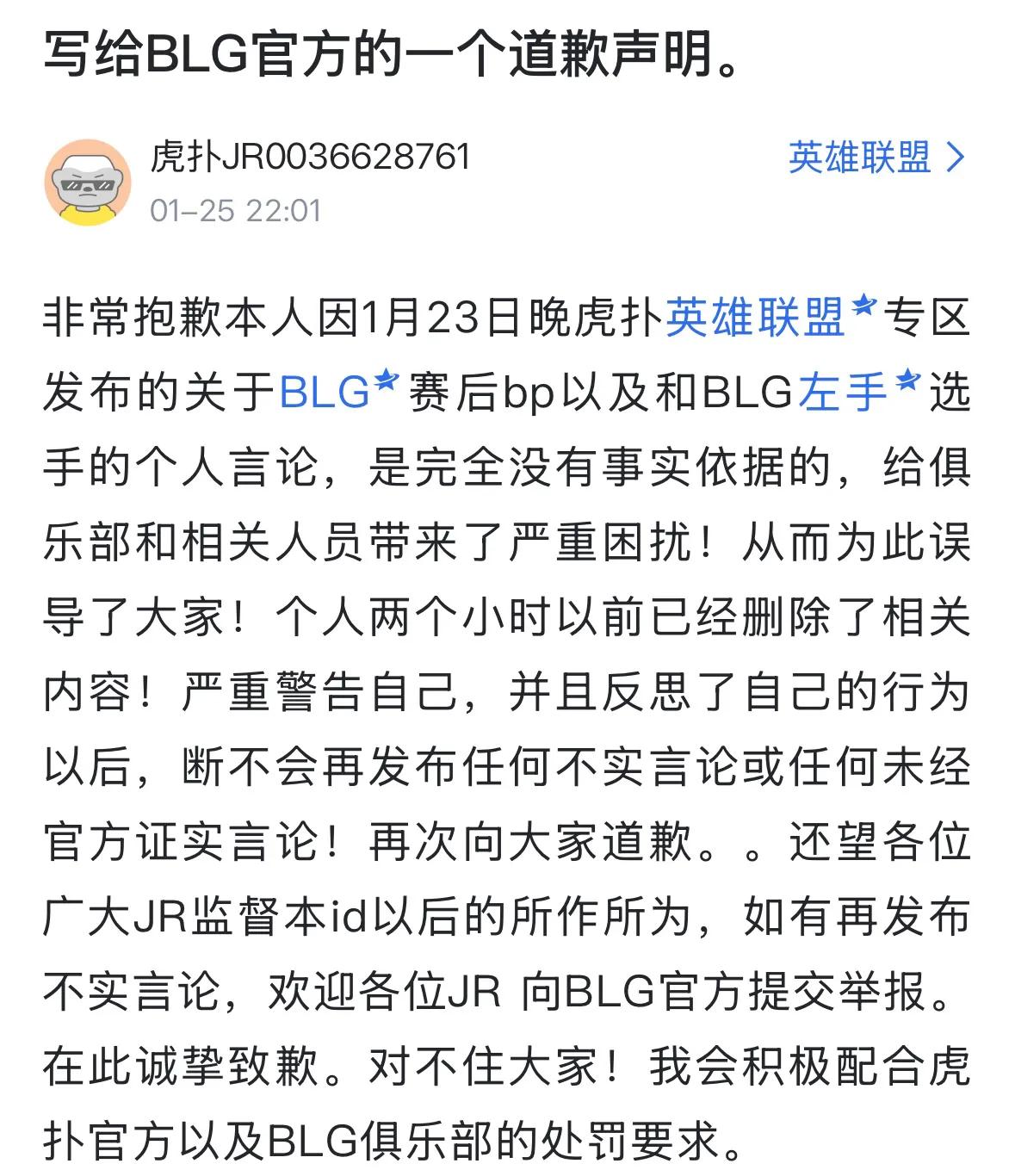 Introduction: The S16 season has officially started, and most players have been paying attention to the recent clashes, with the LPL region’s games being highly competitive. Recently, discussions about the BLG team have surged. As one of the top-tier "Galactic Fleets" in the LPL, fans hope they achieve great results this season. After losing to JDG, a wave of negative rumors emerged, especially about internal conflicts, sparking widespread debate across the community. Recently, BLG officially released a public statement strongly condemning the rumor spreaders and began collecting evidence. Soon after, the rumor maker issued an apology across major platforms, with some netizens sharing his previously defiant attitude and even daring others to investigate.