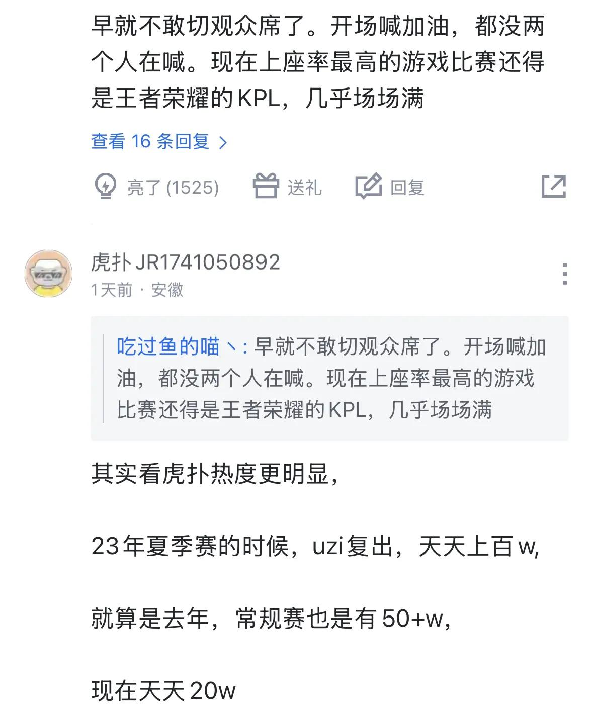 Moreover, viewers who have watched the matches can feel that the opening cheers have drastically diminished. Previously, teams had distinct fan groups, and there were even moments when two factions cheered against each other, with a third faction from LGD joining in. Now, the cheering often comes from the same small group, sounding very loud and similar, as if they’re shouting right next to the microphone. Honestly, the peak popularity in recent years was probably during the S13 summer split when Uzi returned; back then, daily viewership reached millions and regular season matches were packed. Now, the numbers have dropped to around 200,000, with extreme fluctuations.
