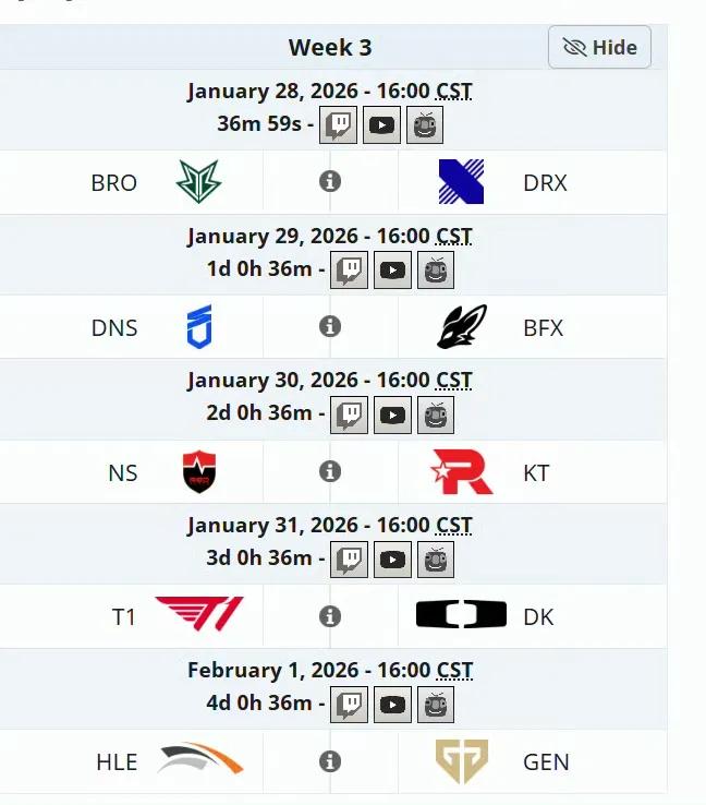 The upcoming Super Week still has four matches: BFX vs. DNX, NS vs. KT, T1 vs. DK, and HLE vs. GEN. Currently, the first two matches are crucial, especially the battle between NS and KT, which will likely determine the final direction of the competition. Although KT’s recent form has been unstable, they are the world runner-up team and still formidable in BO5 series. If they win the first two matches, T1 will face no pressure. Given HLE’s current poor form against GEN, they will likely have to accept playing in the play-ins.