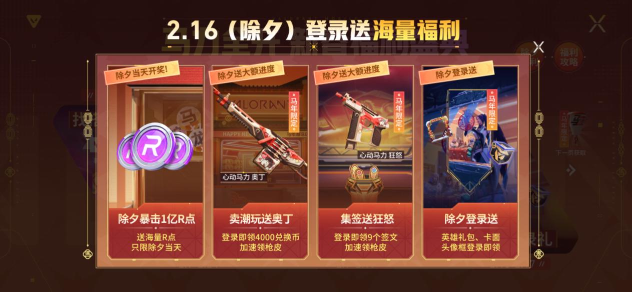 New Year’s Eve Celebration: On the night of February 9th, logging in lets players join a prize pool worth 100 million R-points, with chances to trigger R-point critical hits. Additionally, exclusive Lunar New Year titles, card skins, avatar frames, limited-time renegade skins, and hero selection packs are all handed out to help players start the new year strong.