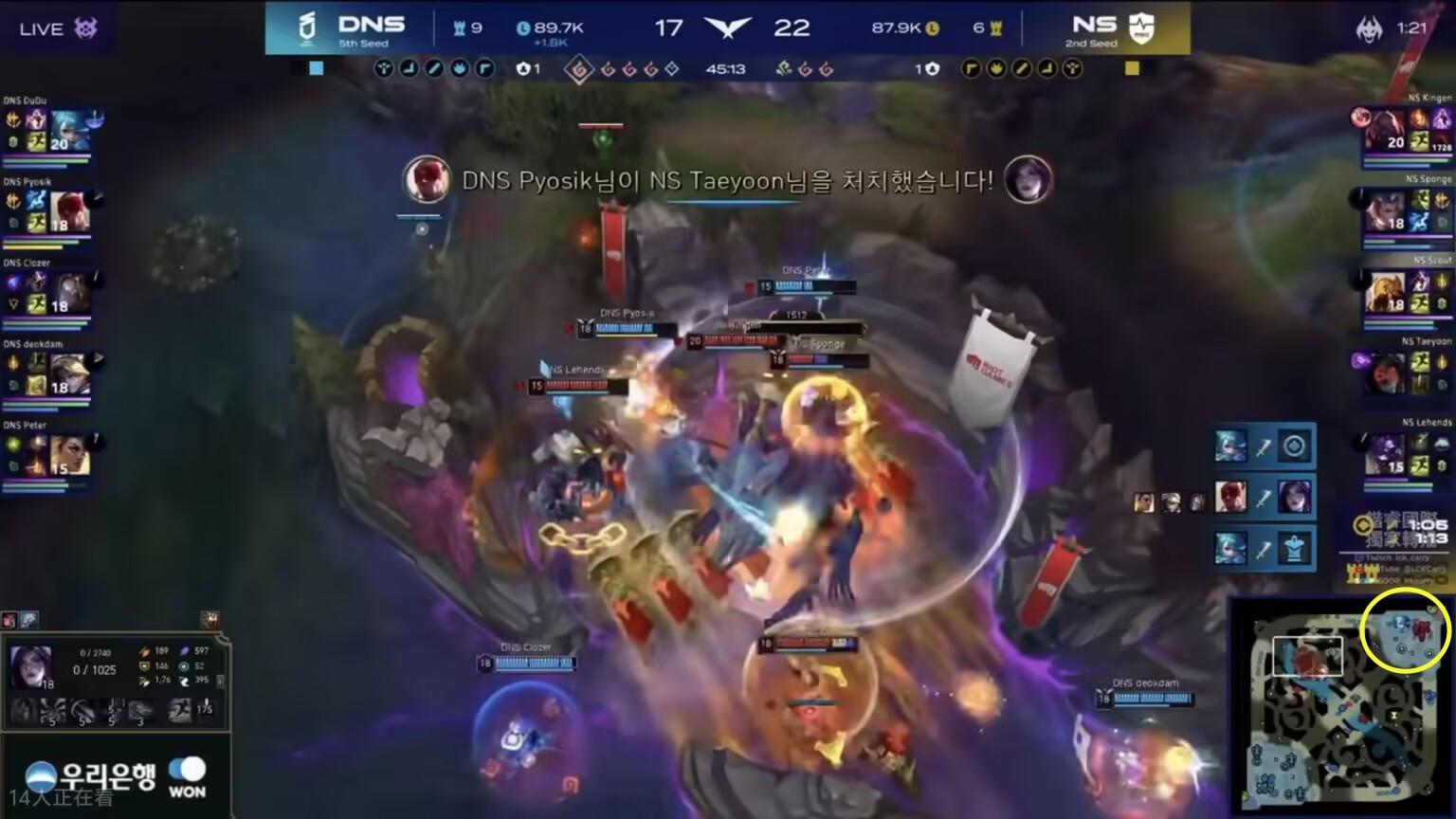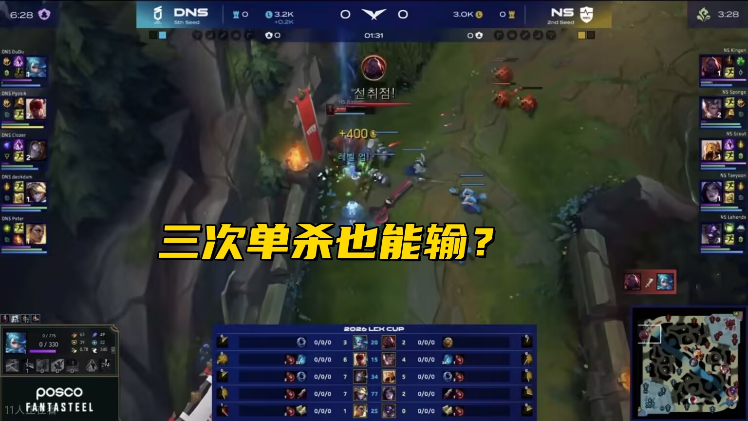 After taking the first game, NS was caught off guard as DNS won two consecutive games to complete a 1-2 reverse sweep, claiming the fifth playoff spot. This BO3 series was quite extraordinary, with both teams displaying some incredible plays. Especially in the deciding game, Kingen first picked Sion, and Dudu countered with Gwen. Yet, just 1 minute and 30 seconds into the match, Gwen was solo killed by his lane opponent. The solo kill scenario repeated again at 4 and a half minutes.