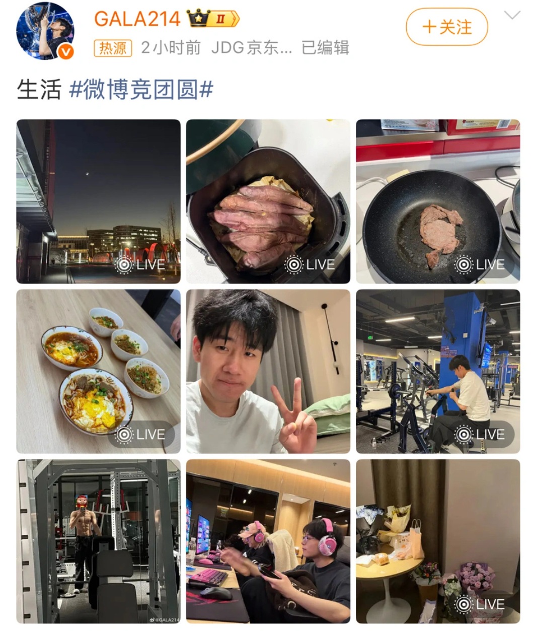 The intra-group matches of the LPL region have all concluded, entering an off-season as we await the start of the Knights' Journey. During this period, JDG’s bottom lane player GALA posted a daily photo on Weibo.