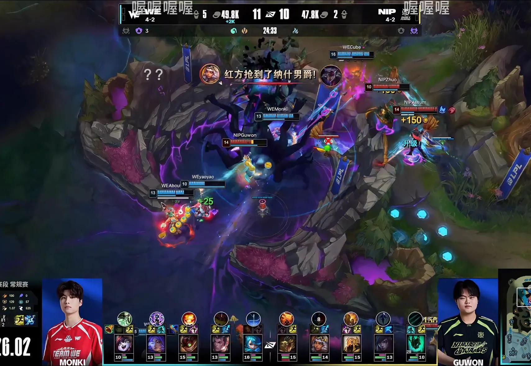 The main focus of discussion is their jungler and captain Monki. In the first game, NIP had a slight lead early on but made mistakes mid-game, allowing WE to seize control. Just when it seemed WE would take the first point, they faltered during the Baron fight. NIP's jungler Kiana capitalized on the opportunity and secured the Baron with Smite at low health. Then Monki’s Xin Zhao charged into the pit alone, with no teammate support, engaging in a suicidal fight. The move itself wasn’t terrible, but the enemy’s burst damage was too overwhelming, and he was instantly killed.