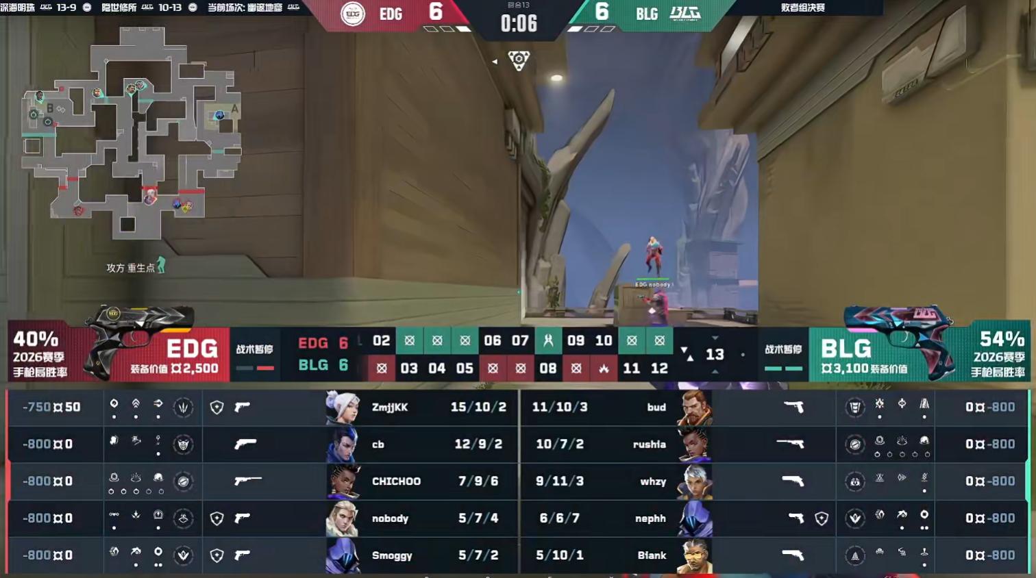 In the first half, BLG won the pistol round; EDG took the bonus round and followed with a three-win streak.