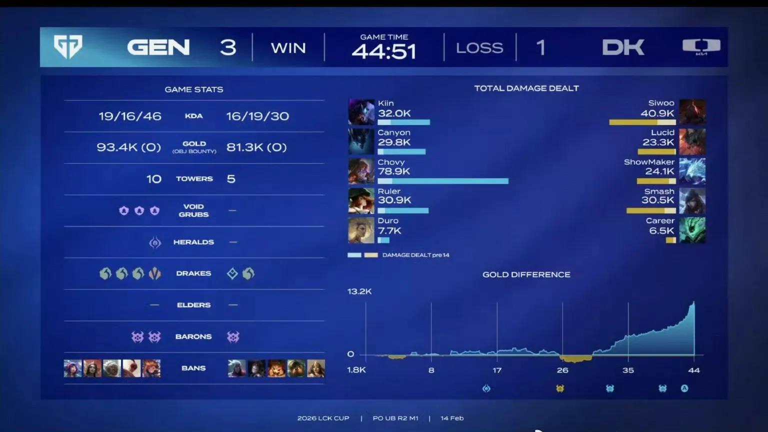 Most players remain highly interested in the LCK region battles. Gen.G, a well-known veteran powerhouse, has maintained strong popularity and momentum over recent years. This season, they continue to compete with their fully renewed roster, showing very consistent overall performance. So far, they have achieved an undefeated record, ranking first in LCK. Many fans joked that this is typical Gen.G behavior—dominant for 11 months and then faltering at Worlds. The match against DK became a hot topic online, and unsurprisingly, Gen.G secured another easy victory.