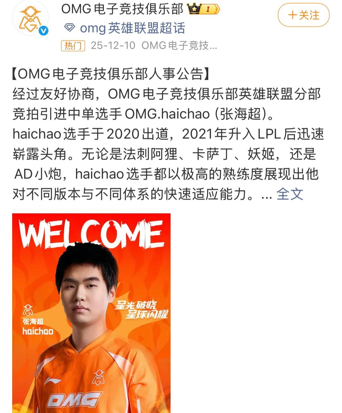 Unexpectedly, Haichao is a player with strong character. Joining youth training at 16 and reaching the LPL by 19 marks him as a rare talent among pros. However, lacking a strong team limits his potential. If he could join a mid-to-upper-tier team, he might achieve some success. It depends on whether any team extends an olive branch. Currently, his performance with OMG is not ideal.