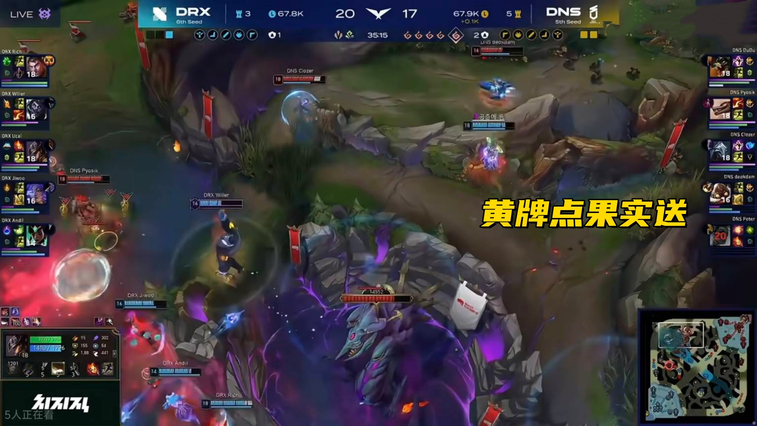 Because the mid-laner lacked teleport, he couldn’t arrive at fights promptly during the split-pushing phase. DRX didn’t dare to initiate fights either. After some back-and-forth, DNS secured a lead over 10k gold and took the match point. The third game was the most interesting, arguably the most "genuine" match in the LCK. At 12 minutes, DNS led 5-1 in kills and had a 1.3k gold advantage. Under normal circumstances, this game should have been theirs, but the players made some critical mistakes.