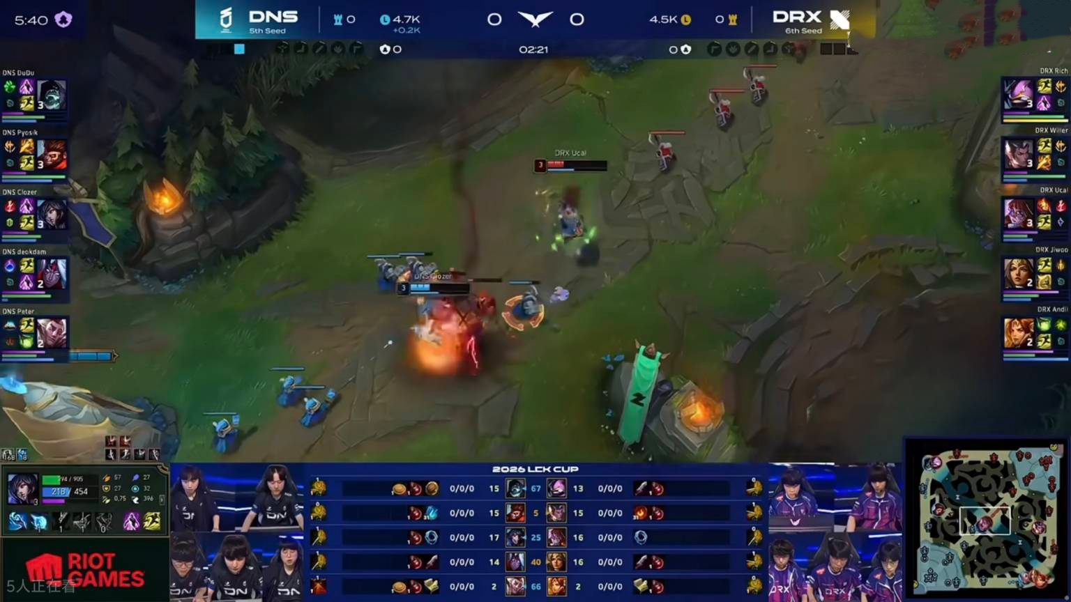 This BO5 was both thrilling and intense. In the first game, both teams farmed peacefully until 11 minutes when a river fight broke out. Ucal’s Azir paid tribute to Faker’s style, with chaotic teamfight entries leading to multiple deaths. After continuous teamfight collapses, DRX snowballed and ended the game with a 14k gold lead. In the second game, DRX’s bot lane gained early advantage, but mid lane was pressured heavily. Ucal gave up his teleport, making his ignite-carrying Sylas ineffective.