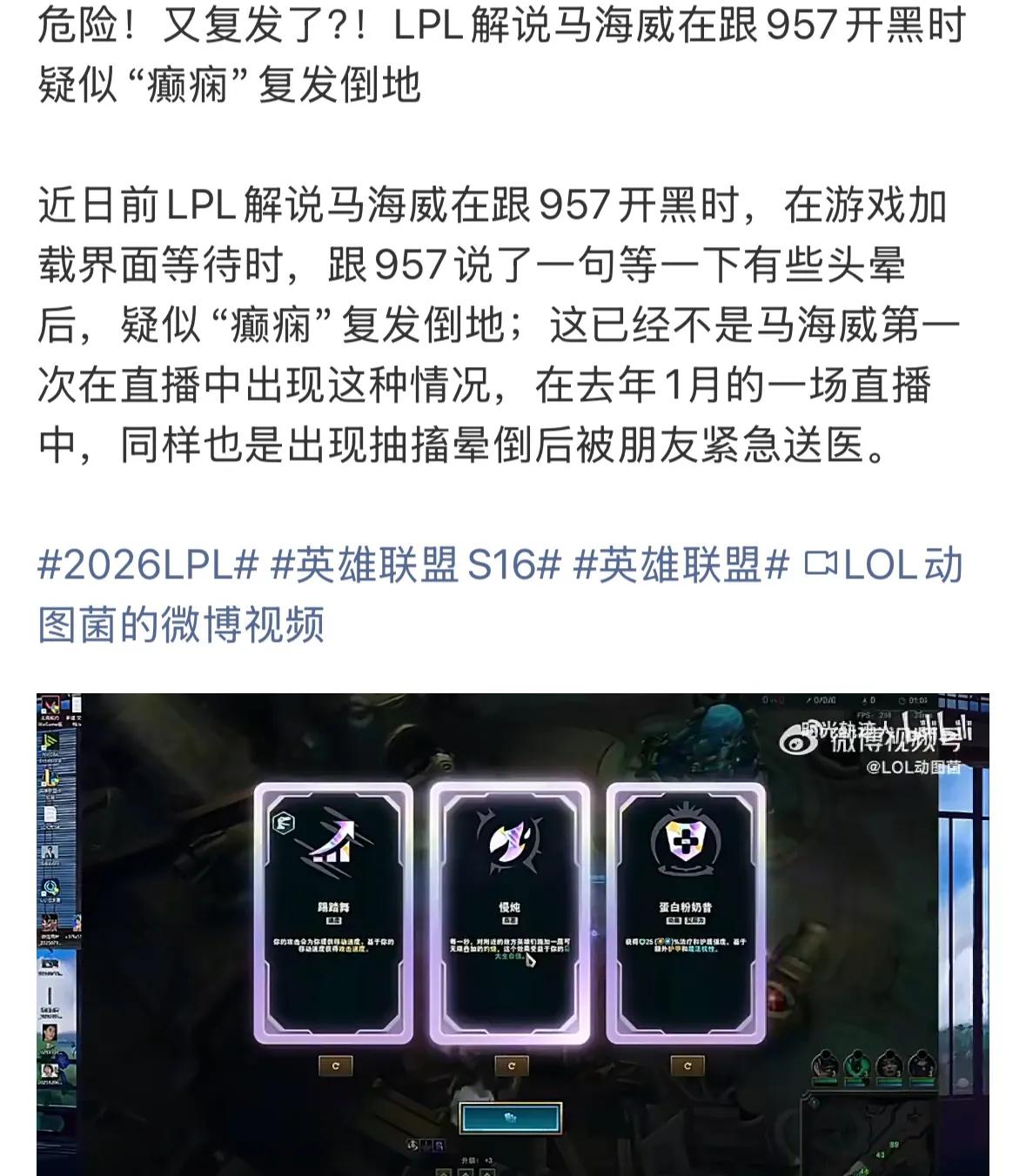Introduction: The S16 season matches have officially started, and most players have been paying close attention to the recent confrontations. Currently, the LPL is in its break period, with teams finalizing their preparations. During the Lunar New Year, LPL official caster Ma Haiwei experienced a severe epileptic episode, sparking widespread discussion among the online community. Even his co-streamer 957 was frightened. This was not his first seizure; last year he also suffered an epileptic attack that left him bleeding badly. Meanwhile, insiders revealed the coaching lineup for the Asian Games, with the well-known Clearlove signing up, while Tabe declined to coach and apparently cannot participate either.