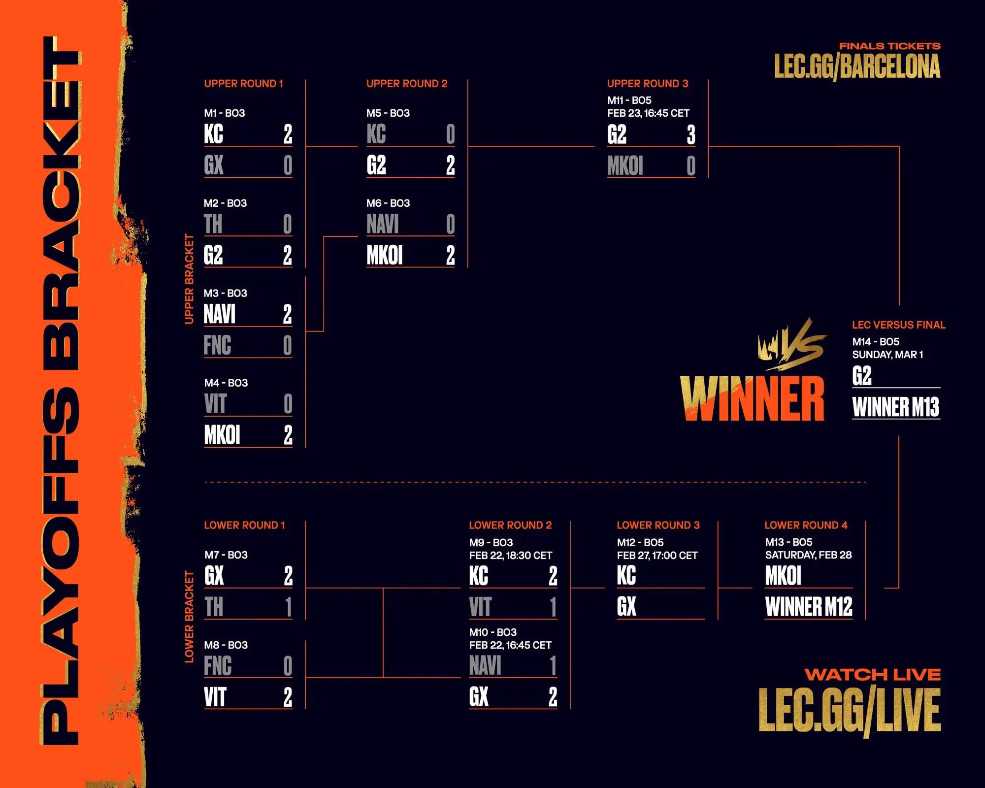 During the regular season, G2's performance was not particularly impressive, possibly due to the BO1 format's unpredictability and their own playful style. After defeating FNC in the last match, G2 advanced to the playoffs ranked second to last. Many thought the European region had changed, since both FNC and G2 were at the bottom, so how could other teams perform well? However, G2 completely awakened in the playoffs, giving their opponents no chance, winning all three matches with a 7-0 record to reach the European finals.