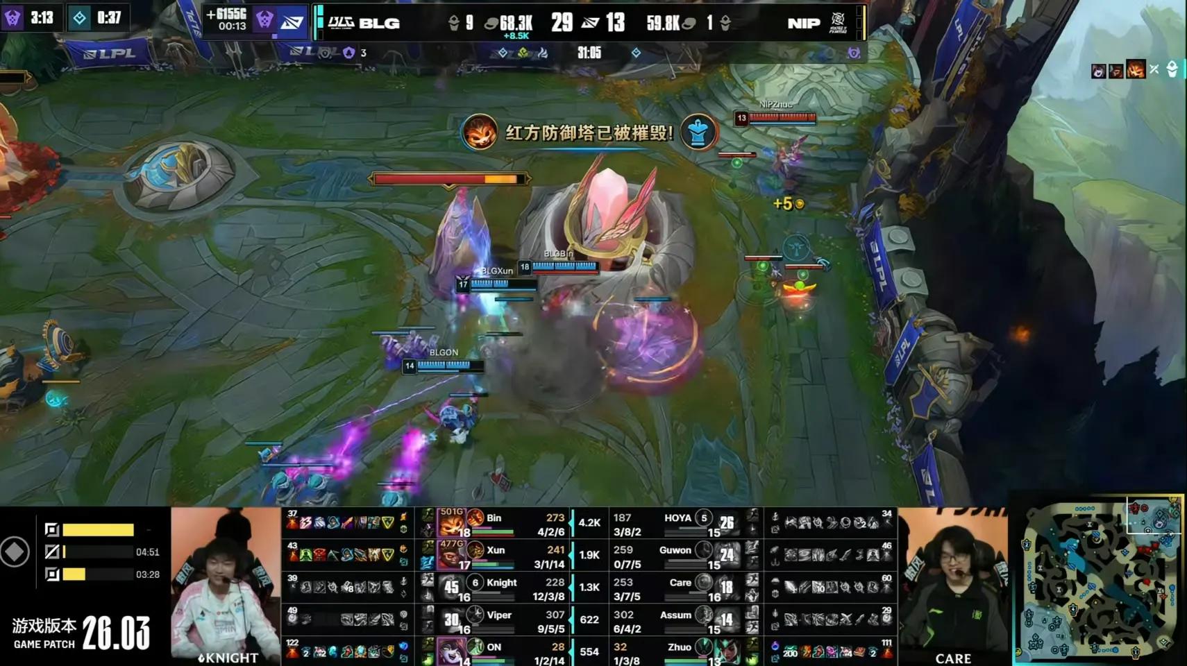 In the early phase of the first game, both sides fought fiercely, but BLG maintained a consistent economic lead. The difference in individual skill was clearly displayed. BLG managed to destroy NIP’s base comfortably at 27 minutes, while Knight kept his perfect career record on Ziggs intact. The funniest moment was probably in the second game, where BLG again gained a big early advantage. However, at 17 minutes, NIP’s jungler Mundo seized an opportunity to double kill BLG’s bottom lane duo, causing Coach Daeny to slam the table in frustration and utter some expletives. Fortunately, it didn’t affect the outcome much, and BLG closed the game in 30 minutes.
