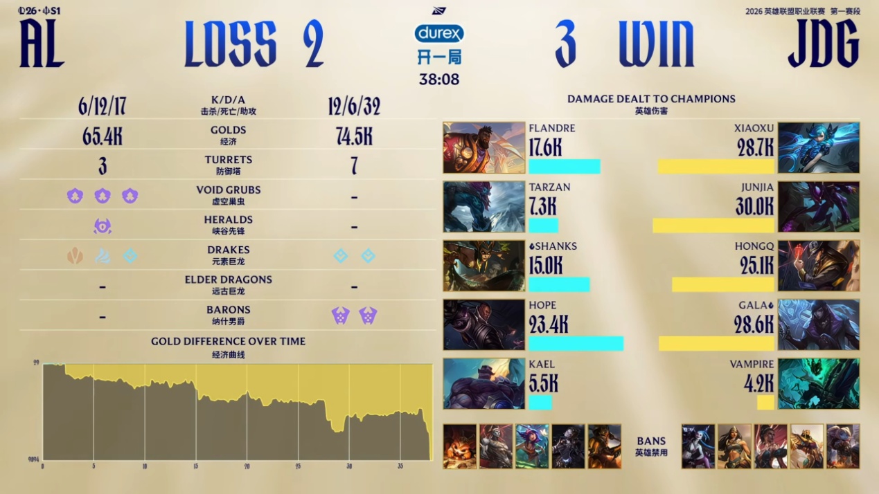 Yesterday's LPL playoffs produced a major upset: the top-ranked team in the Summit Group, AL, was reverse-swept by JDG in a best-of-five series, ultimately losing after a hard-fought five games.