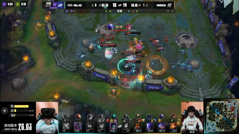 ELK proved to be the perennial unlucky player again. In a crucial 31-minute team fight, BLG's mid, jungle, and support were all eliminated. As Xiaohu drove after enemies with his ultimate, ELK got stuck on the edge of the Ryze portal. Clicking his mouse outward caused him to miss the teleport (a known bug). This mistake directly cost WBG their chance to turn the game. Had ELK boarded the portal, he could have at least secured a kill on Bin. Moreover, the next drake was only 5 seconds from spawning, which would have granted them the Soul.
