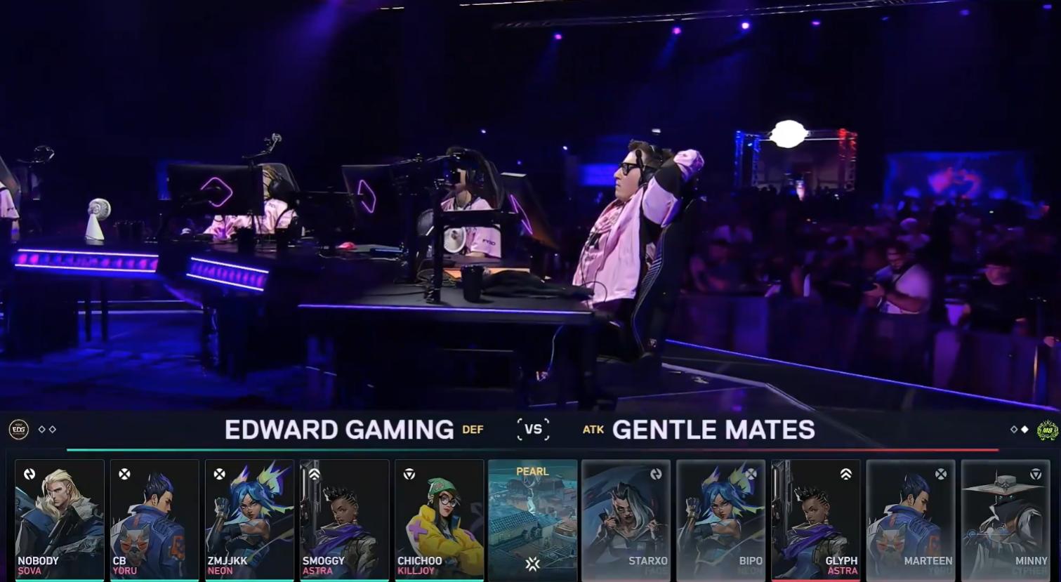 Defending side EDG: Sova, Neon, Chamber, Omen, Viper
