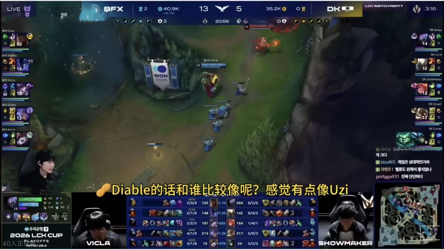 Overall, the bot lane difference was stark. Regardless of the champion, Diable consistently lane-dominated Smash. Both teams play around their bot lane, but when BFX's Diable gets resources, he carries hard, while ShowMaker seemed relatively passive. The AD carry gap was surprisingly large. Could it be that DK's win over T1 was mainly due to T1's questionable draft? After this series, it's clear DK isn't on the same level as BFX in a direct showdown.