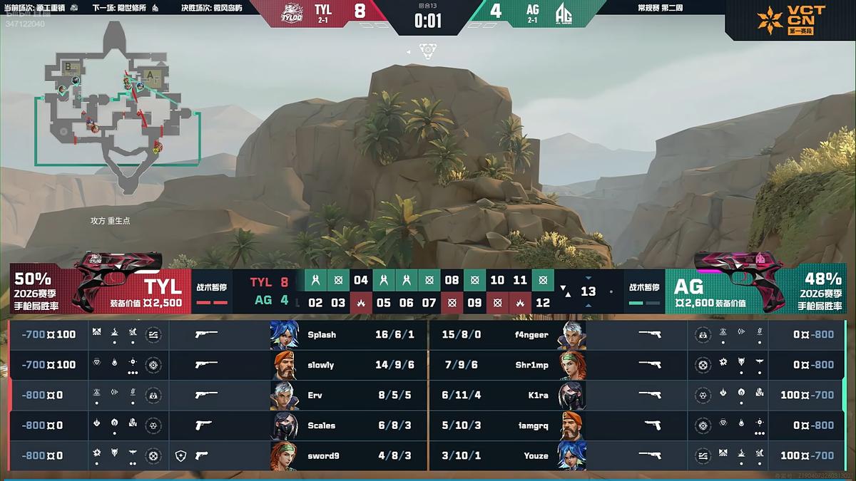 TYL secured the first two points of the first half. In round 3, AG won the gunfight to reclaim a point. In round 4, TYL's perfect utility coordination helped Splash achieve a triple kill, allowing TYL to gain another point.