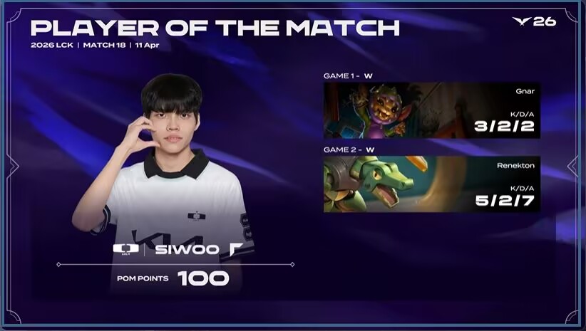 Xu defeating Da Chao sounds somewhat unbelievable, but DK actually accomplished it this time. Except for Da Chao having some performance, the rest of GEN's members were in increasingly poor form. San Shu's tempo was completely outplayed by Lucid; Siwoo against Kiin earned MVP; Xu wasn't crushed, and the bot lane also performed. Looking at the whole match, DK's entire team played better than GEN. However, in the first game, DK won by turning the game around.
