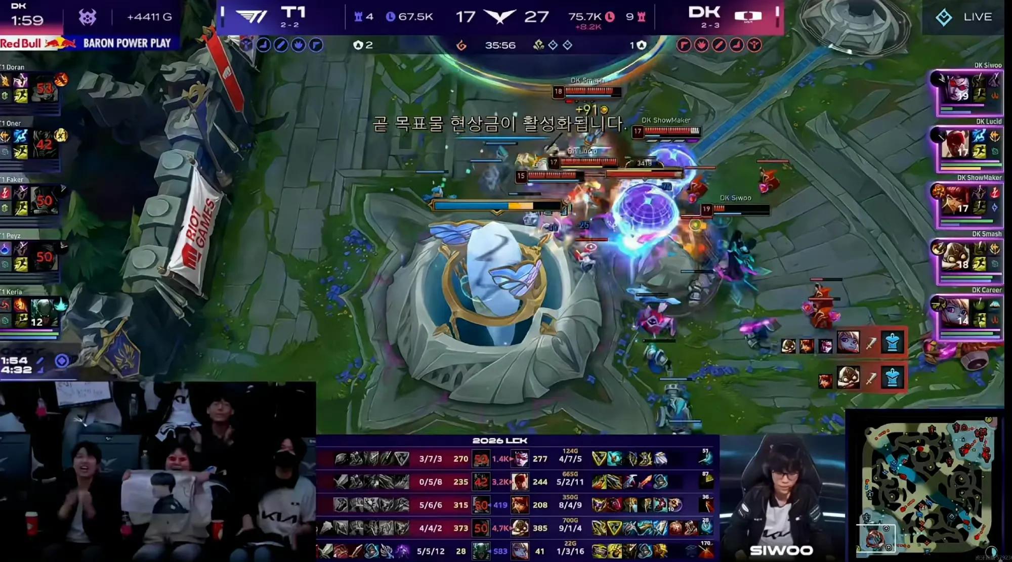 In the match against DK, fans anticipated an easy victory against the underdog, yet critical mistakes emerged in the pivotal game, with Faker also contributing little impact. In the first game, within just five minutes of开局, DK's jungler配合中路 Showmaker eliminated Faker. By seven minutes, Smash further opened up the局面 in the bot lane, killing Peyz. Subsequently, the match entered DK's节奏. At 33 minutes, DK's decisive victory in the Elder Dragon fight ended the game. In the second match, T1's bot lane gained an advantage; support Keria's Lux精准命中 Smash with her Q skill at seven minutes,配合队友 securing a kill. By 12 minutes, Oner even solo-killed Showmaker. In this game, Faker's Azir built no defensive items, opting for full damage output, achieving the highest total damage of 27,300.