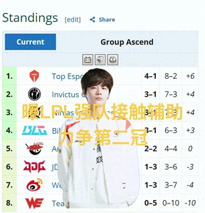 The current LPL standings are chaotic. TES leads with a 4-1 record, followed by IG at 3-1, and NIP also at 3-1. NIP's name is relatively unknown, but after defeating JDG, their ranking soared—even their players didn't expect to win, largely due to AD player Gala's underperformance. BLG, with a 3-1 score, ranks fourth; after losing to TES, team issues surfaced. This squad should focus on top laner Bin, with the AD role as a fallback.