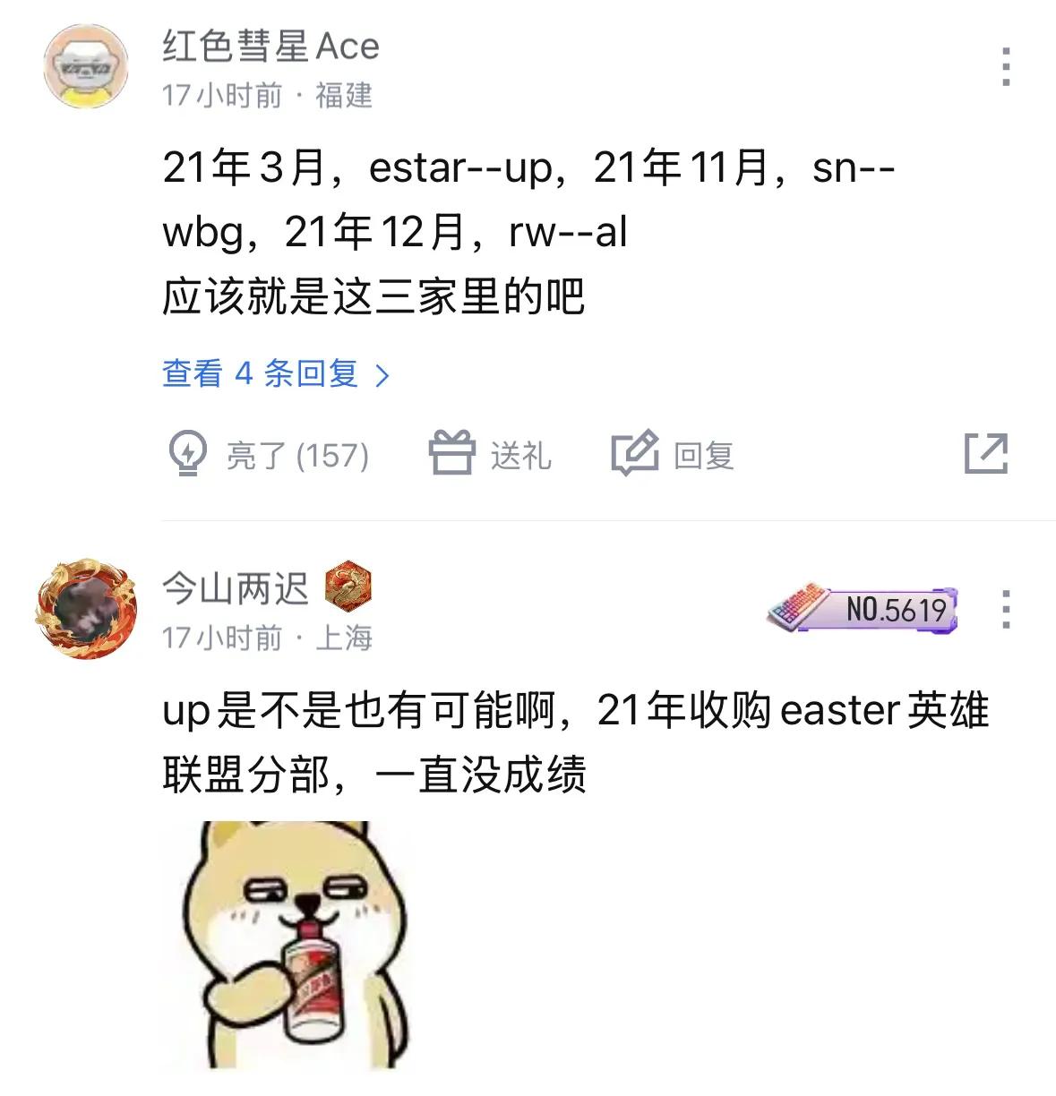 Netizens compiled statistics on club transfers in 2021: in March, eStar renamed to UP; in November, SN renamed to WBG; in December, RW renamed to AL. AL can likely be ruled out first, as they are currently thriving, achieving significant returns at a low cost, making reversal improbable. Next is WBG, which has invested heavily in recent years, acquiring top players annually, and this season assembled an elite all-Chinese roster. The more probable candidate is UP, which has underperformed since joining, with mediocre results and relatively few sponsors currently. However, final confirmation awaits, and all remains speculative.