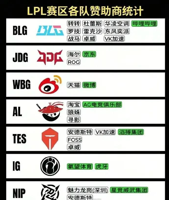 It is believed that most players are quite familiar with the LPL region. As a former world-class top region, LPL has won three World Championship titles. Over the past two years, as the esports industry entered a downturn, the situation in the entire LPL region has also become less optimistic. Both competition popularity and various sponsorships have significantly diminished. Many teams are operating at a loss, struggling merely to sustain operations, let alone generate revenue. Recently, some netizens compiled statistics on sponsors of major teams and found that the previous glory has faded. The team with the most sponsors is BLG, which recently won a world-class championship, boasting ten sponsors.