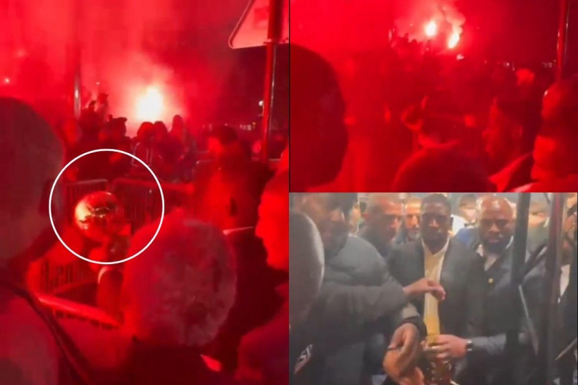 The most notable moment came when Dembele officially exited the theatre holding the Ballon d'Or trophy. Escorted by security and guests, the PSG forward headed straight to the area where the ultras had gathered since the beginning of the ceremony. Hundreds of fans erupted in excitement as their idol appeared.