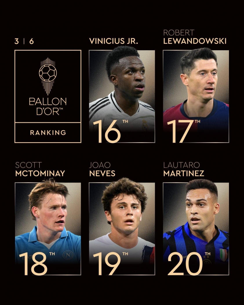The 2025 Ballon d'Or ceremony has officially concluded with Ousmane Dembele as the winner; below is the detailed ranking list of the 30 nominees.