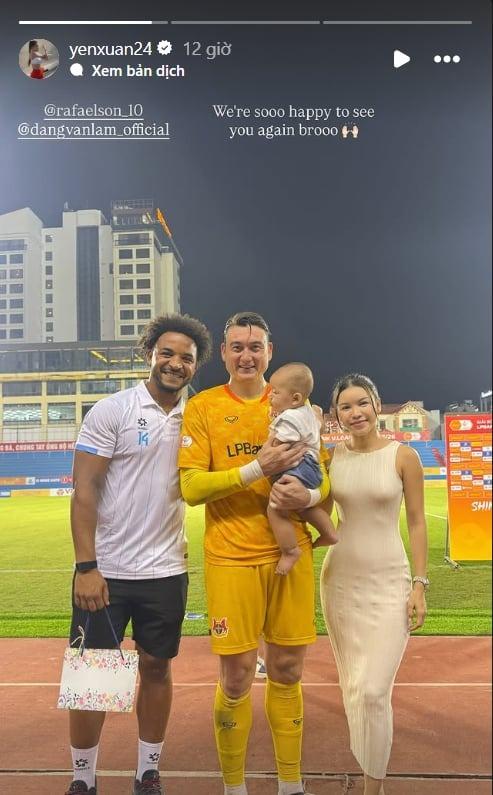 Meanwhile, Văn Lâm’s small family also attracts much attention. Their first son, Lâm Minh, born in February, is often brought by his mother to cheer for his father at matches. On social media, Yến Xuân freely shares everyday moments, from caring for their child to supporting her husband during games.