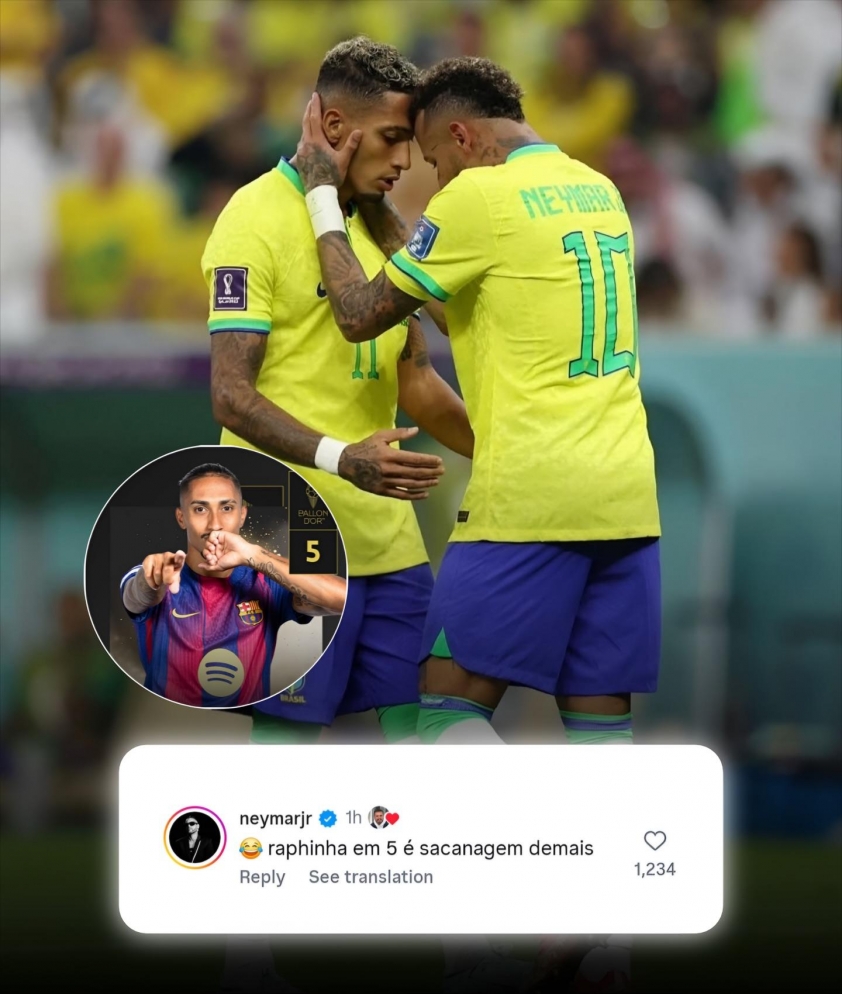 However, many people still debate the rankings behind Dembele. Recently, Neymar spoke out unexpectedly upon seeing Raphinha placed only fifth. He commented that "Raphinha being ranked fifth is truly a joke".