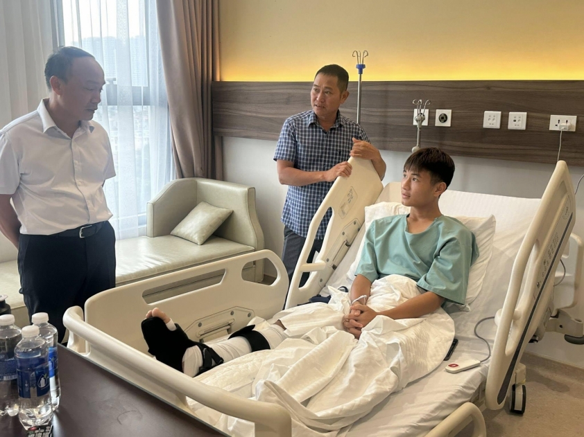 On the afternoon of September 23, on behalf of the Vietnam Football Federation leadership, General Secretary Nguyễn Văn Phú visited and encouraged the young player Lê Tấn Dũng, who recently underwent surgery for his injury at the hospital.