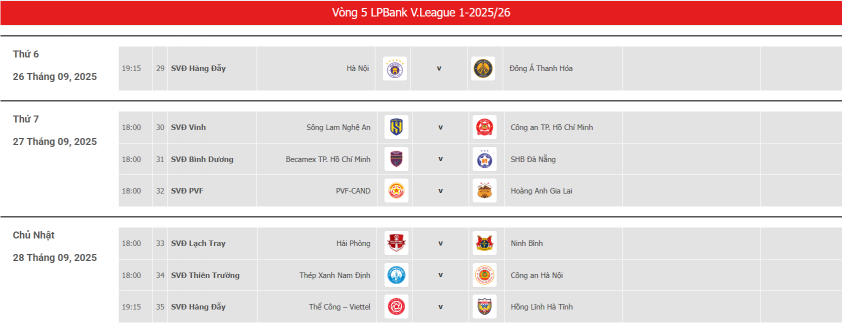 Three matches will follow on September 27th, including Ho Chi Minh City Police’s away game against SLNA. Given the current situation, the home team is unlikely to surprise the visitors. At Binh Duong’s home ground, Becamex Ho Chi Minh will face SHB Da Nang, while PVF-CAND will compete against HAGL. These two matches are seen as quite balanced and promise thrilling contests.