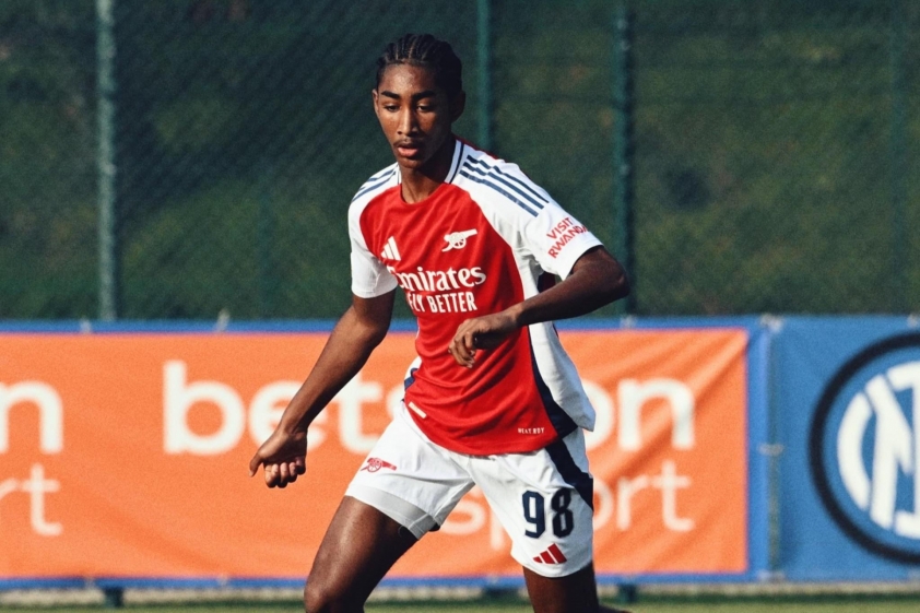 In matches against AC Milan and Newcastle United, he made a strong impression with his mature style of play, drawing comparisons to the “steel shield” William Saliba from the first team. Many Arsenal fans even dubbed this young star the "new defensive prodigy."