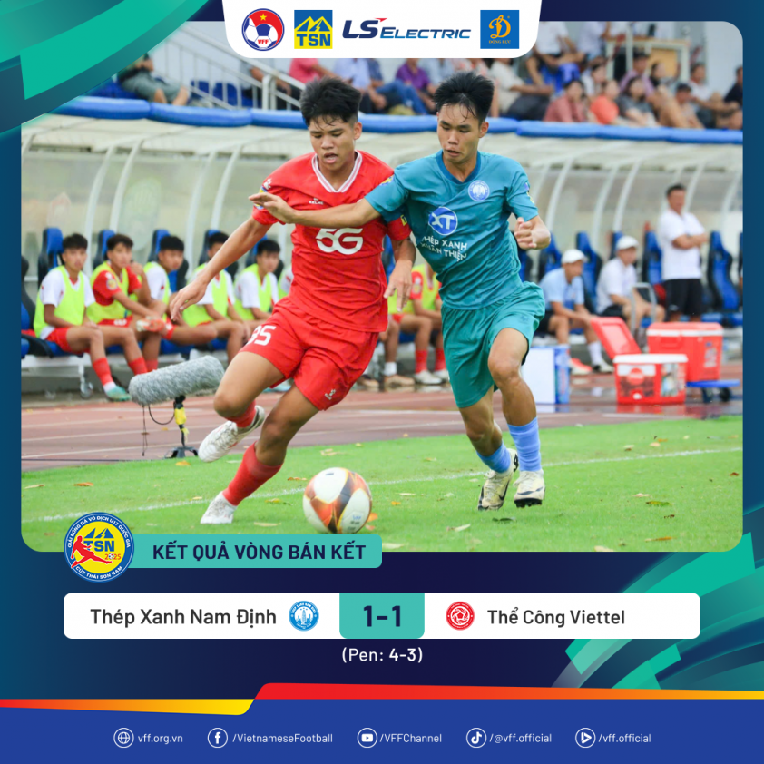 Neither team scored after 90 minutes, so the match was decided by penalties. Here, U17 Thep Xanh Nam Dinh showed greater composure, winning 4-3 to advance to the final. Their opponent in the final will be U17 Hanoi, who defeated U17 SHB Da Nang in the first semifinal. The championship final will take place at 16:00 on September 26 at Ba Ria stadium.