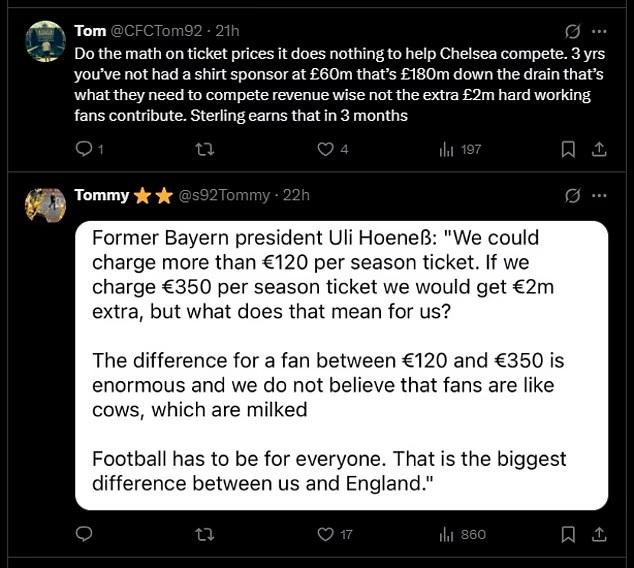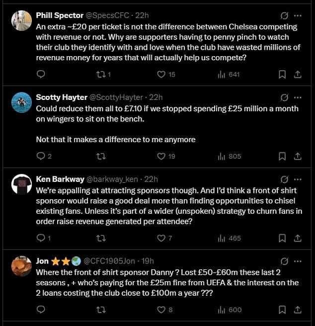 Another fan questioned: "Increasing tickets by £20 won’t make Chelsea competitive. Why should fans tighten their belts to watch their beloved club while the club wastes money year after year?"