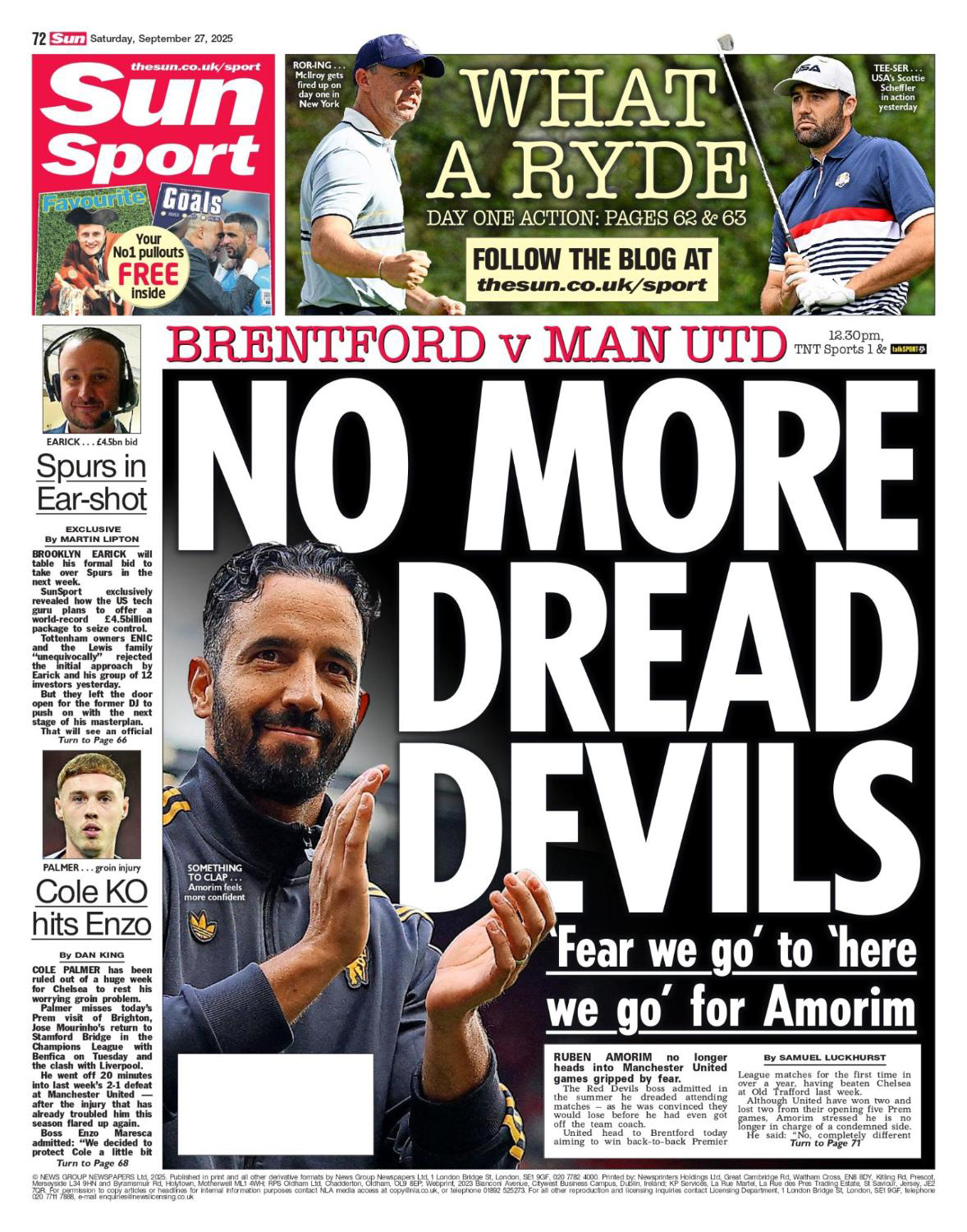 Manchester United will travel to Brentford for the early kickoff on Saturday, with coach Rúben Amorim set to be without four players, including Casemiro who is suspended after a red card, injured Mazraoui and Lisandro Martínez, and Amad Diallo who is temporarily away due to a family loss.