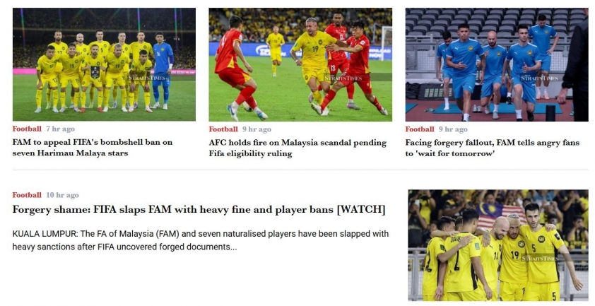 Malaysia's New Straits Times described the FIFA penalty for fraudulent player naturalization as a disgrace.
