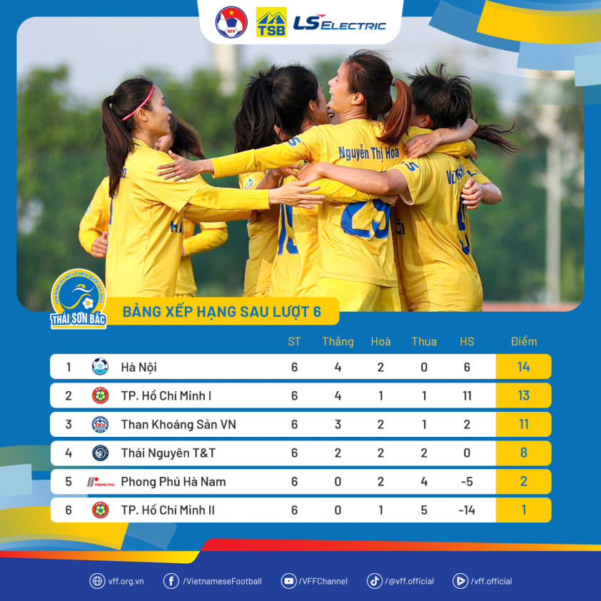 The 2025 Women's National Football Championship – Thái Sơn Bắc Cup features 6 teams: Hà Nội, Phong Phú Hà Nam, TP.HCM I, TP.HCM II, Than Khoáng Sản Việt Nam, and Thái Nguyên T&T. This year’s champion will represent Vietnam in the AFC Women’s Champions League 2026/27. This adds significant excitement and intensity to the title race compared to last season.